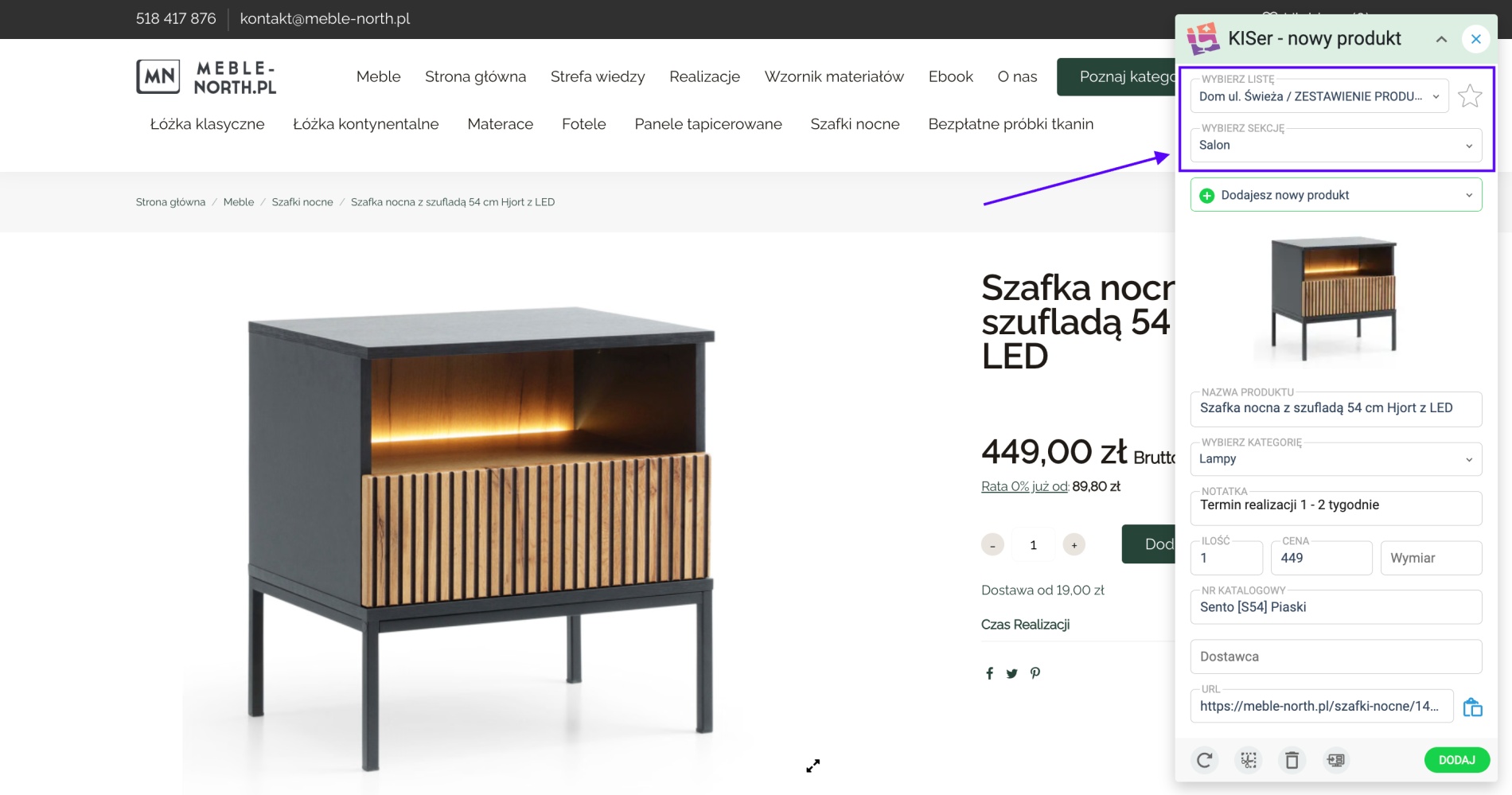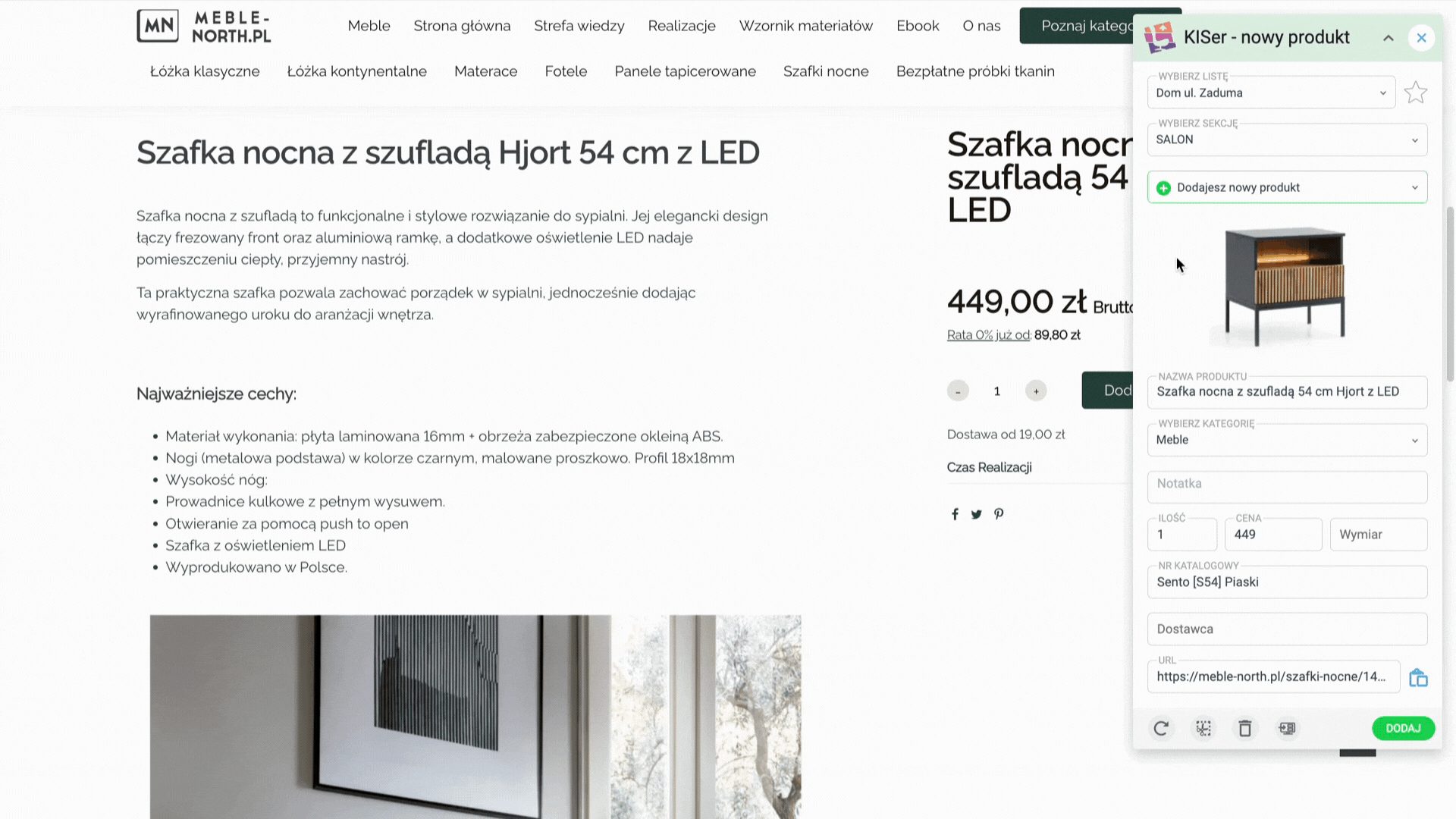 1. Kliknij “Dodaj” a produkt wraz z danymi umieszczonymi we wtyczce znajdzie się na Twojej liście!