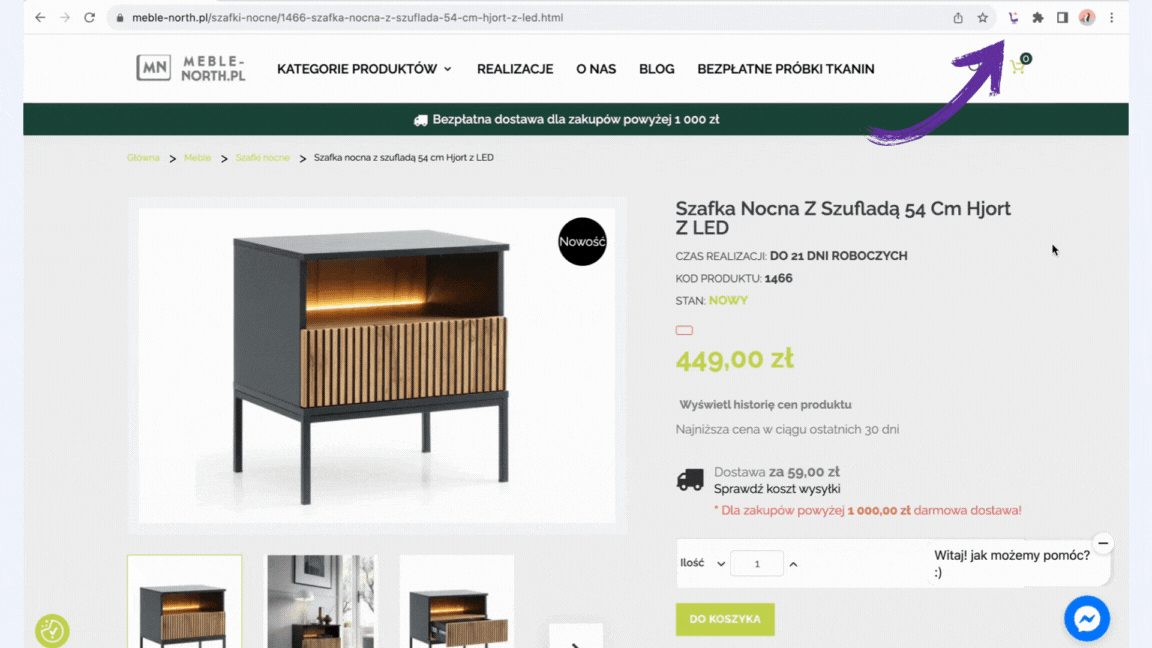 1. Wejdź na stronę z produktem i kliknij wtyczkę KISer!