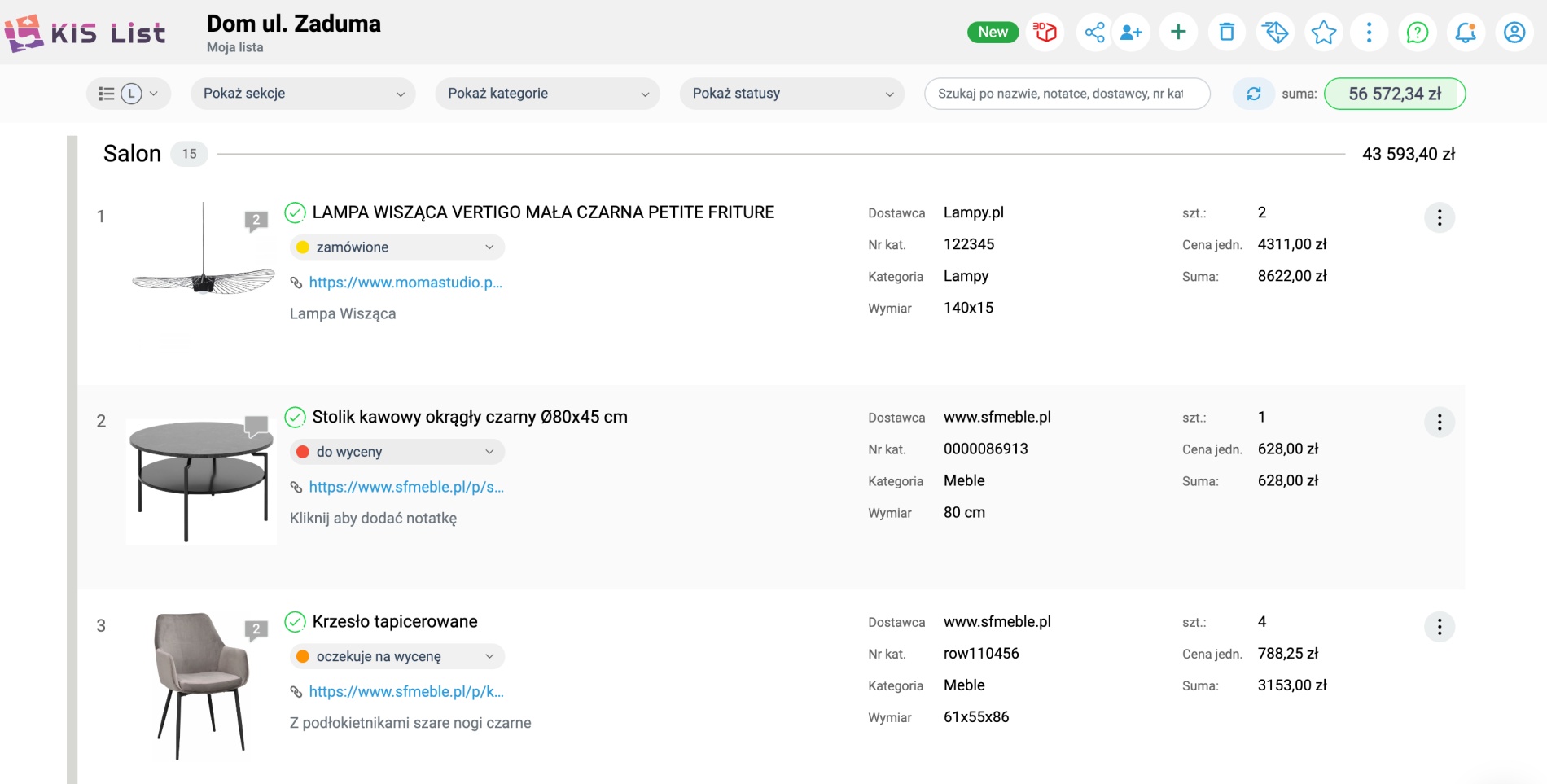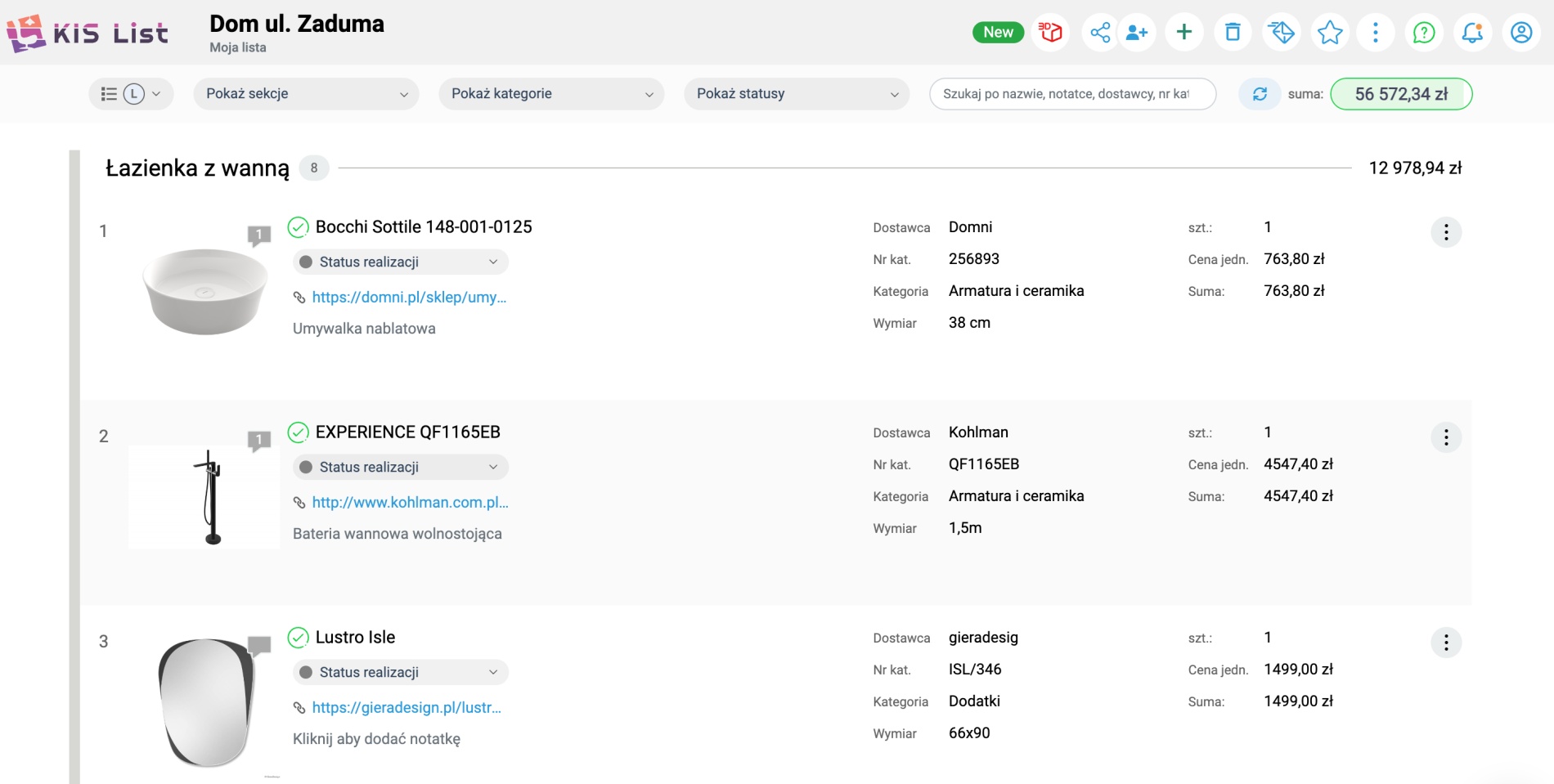I choć KIS List aplikacja do robienia listy zakupów pozwala Ci stworzyć kosztorys projektu szybciej niż nieestetyczna lista zakupów w Excelu, to nie unikniesz czasu, jaki musisz poświęcić na znalezienie "takich samych", ale tańszych produktów. Krótko, rozpoczynasz proces projektowy do początku.