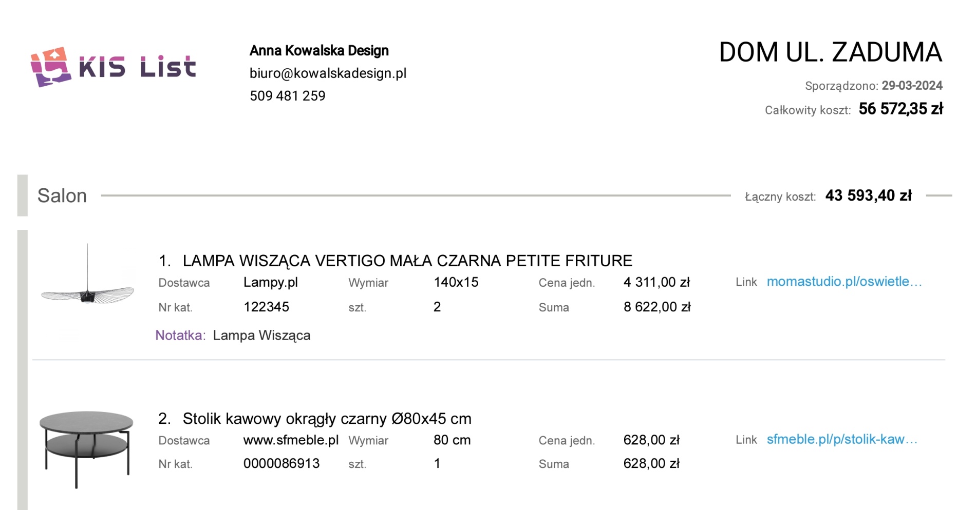 Możesz usprawnić swój proces pracy, przygotowując szablon kosztorysu wykorzystując program dla projektantów wnętrz KIS List , gdzie zbierzesz wszystkie najważniejsze elementy, jakie powinien zawierać projekt.