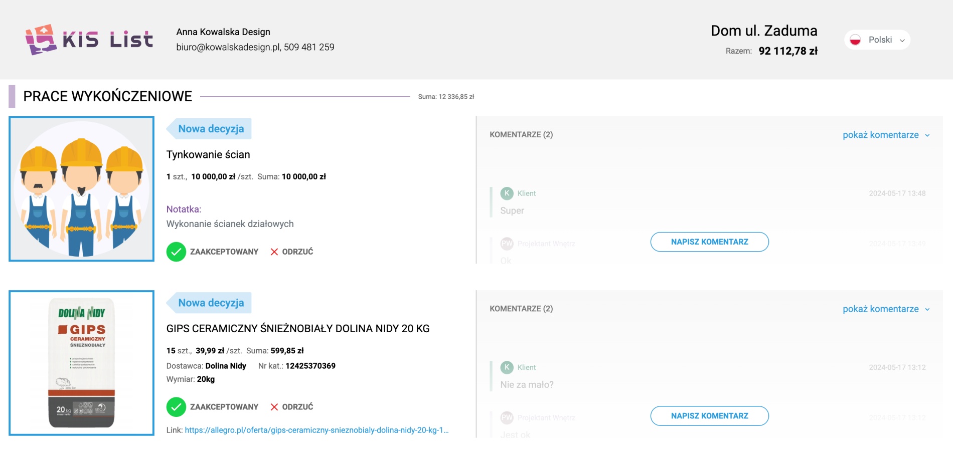 KIS List - idealne narzędzie do tworzenia list zakupowych i podsumowania prac wykończeniowych
