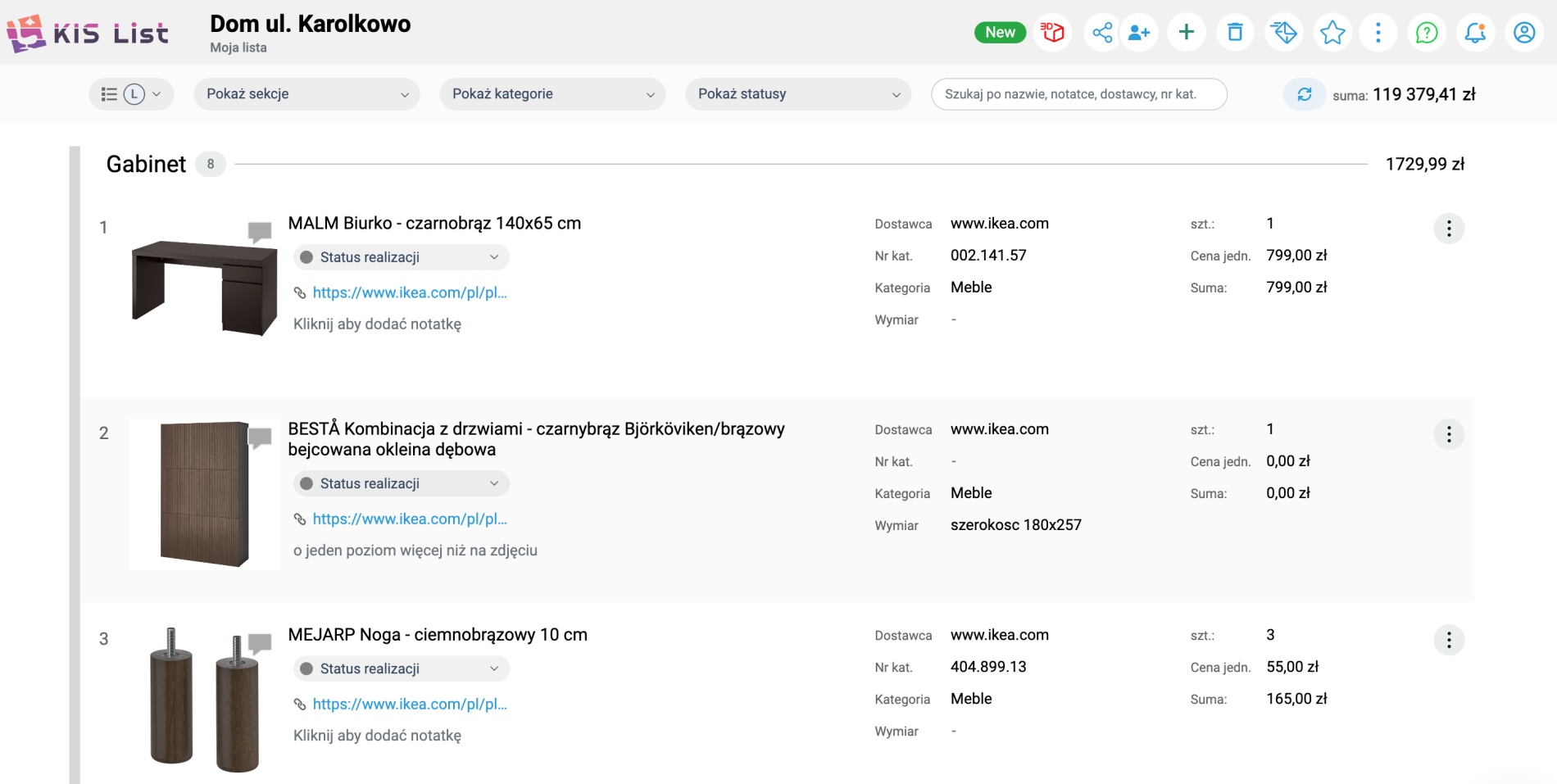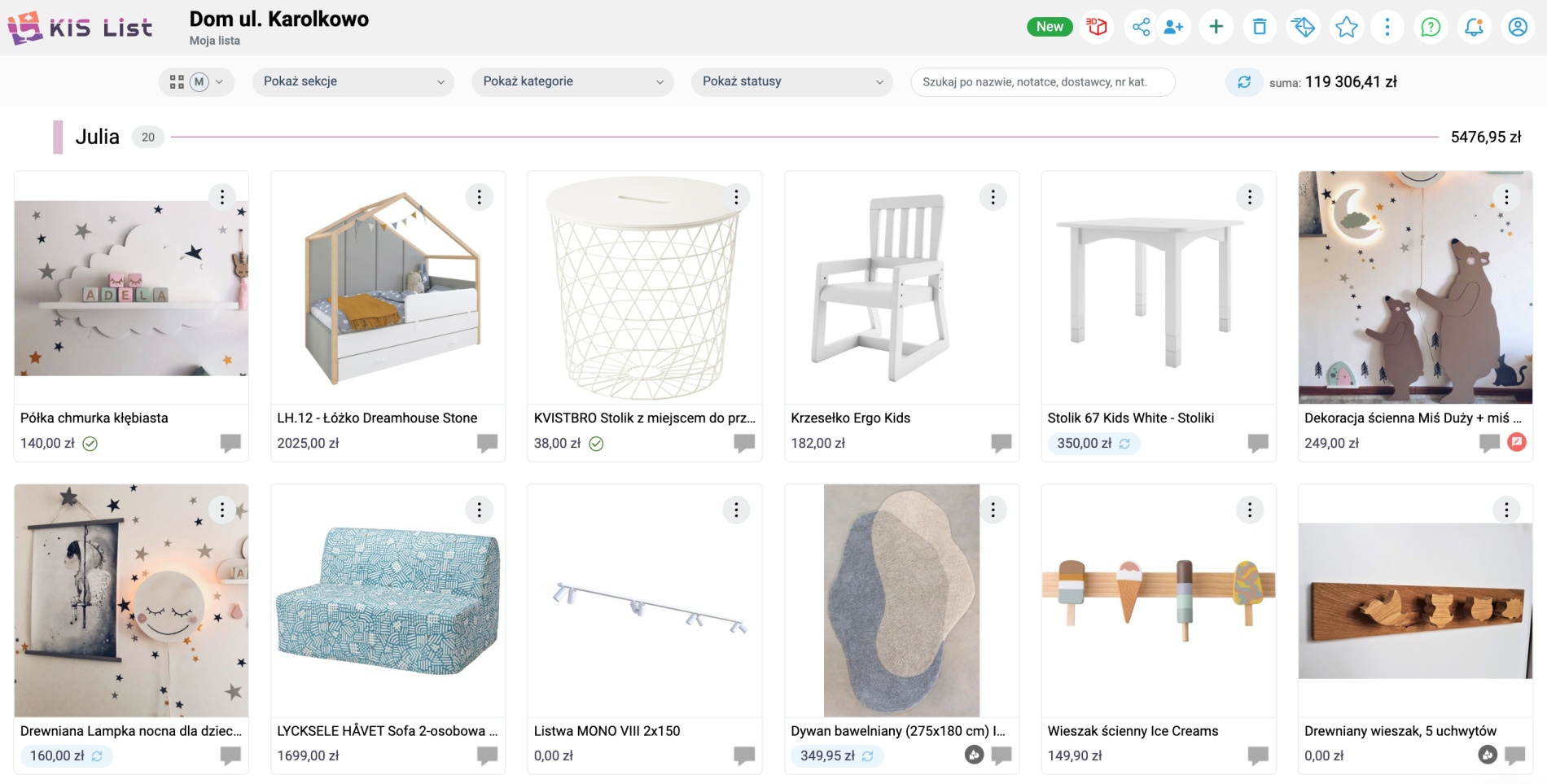 To właśnie nawyk poszukiwania rozwiązań doprowadził do powstania KIS List, narzędzia, które automatyzuje najbardziej żmudny element naszej pracy, jakim jest tworzenie listy zakupów do projektu wnętrz.