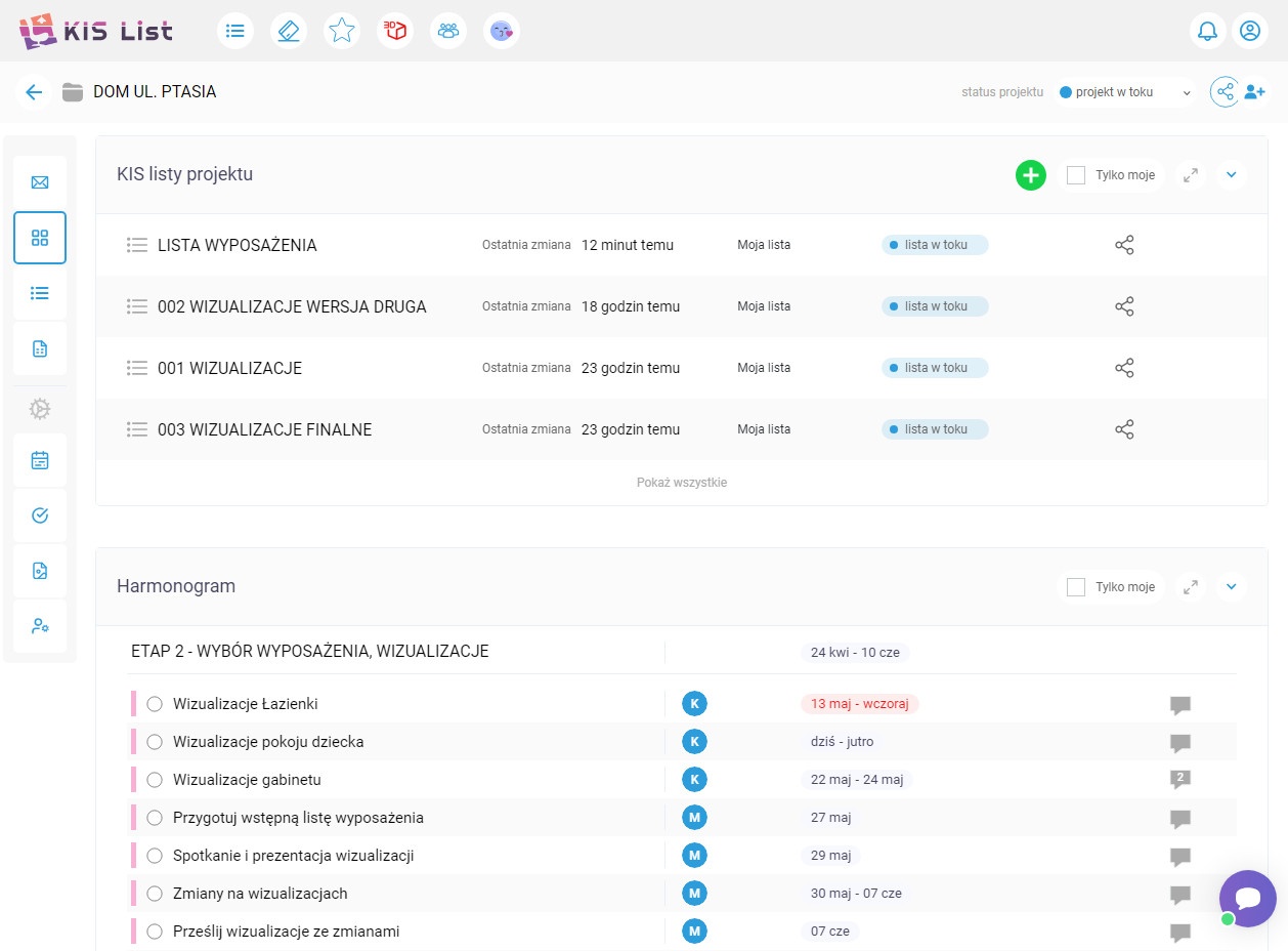 Lista zadań do zrobienia w projekcie w KIS List.