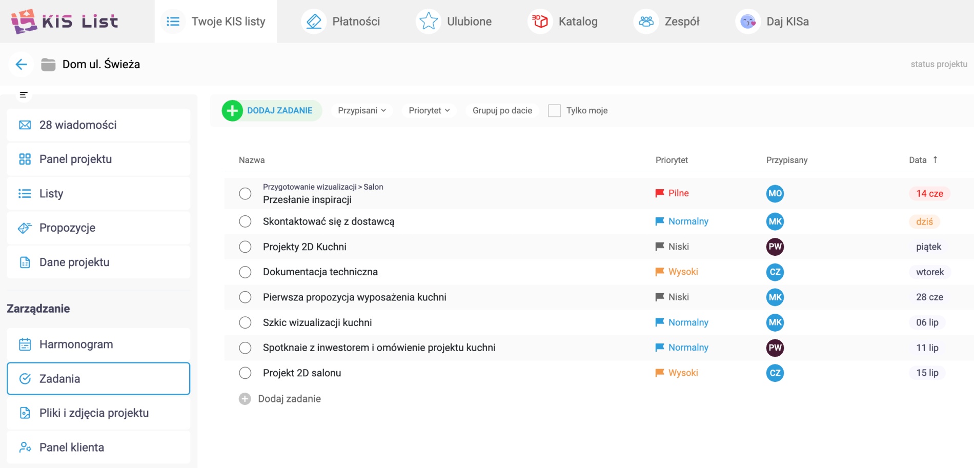 Podobnie jak do każdej z list stworzonych w KIS List do każdego projektu, możesz dodać listę zadań do zrobienia, będącą Twoim kompasem w zarządzaniu całością projektu.